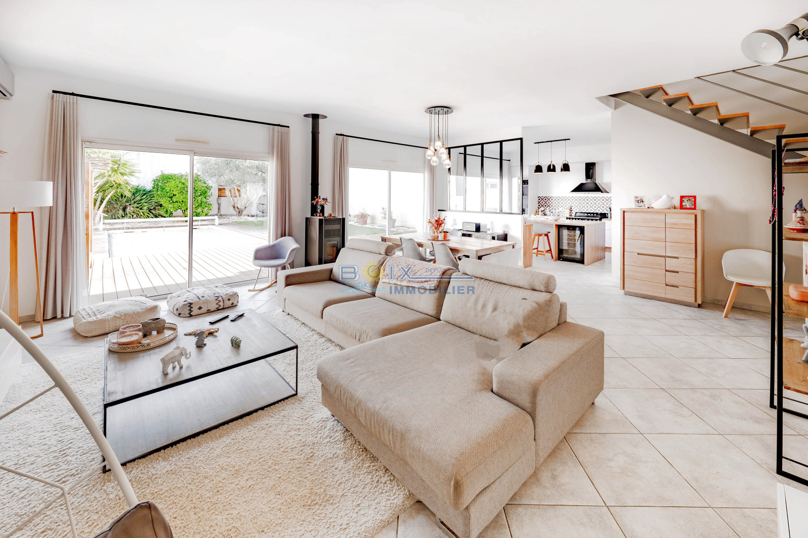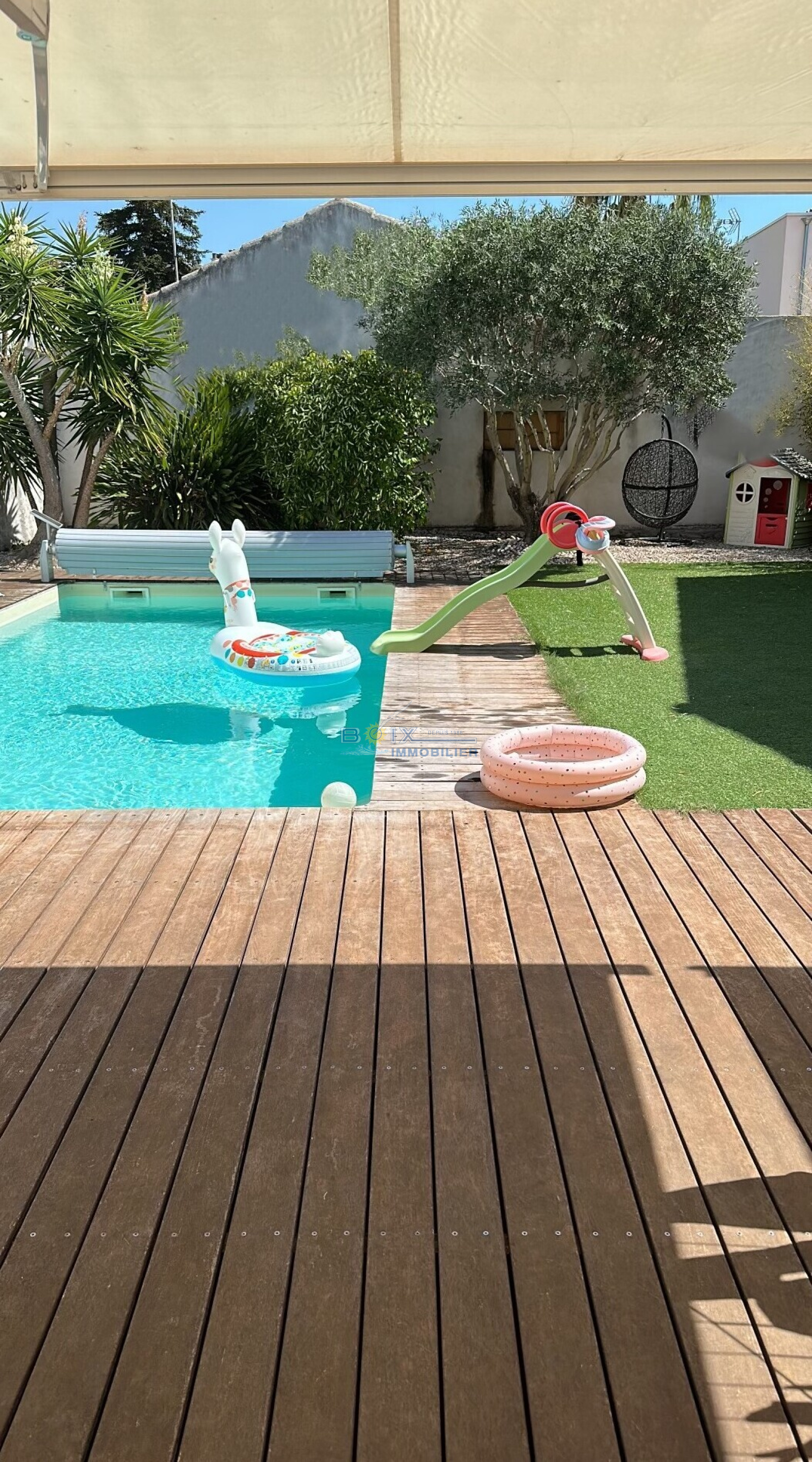 Vente dans quartier très calme maison contemporaine comme neuve .Composée: D'un hall d' entrée très lumineux, cuisine USA entièrement équipée séjour salon donnant sur une grande terrasse avec accés a la piscine.Une chambre,toilette,un bureau.A l'étage:Une suite parentale avec salle d'eau et dressing. 2 chambres et une salle de bains.Buanderie,Garage + grande mezzanine.Piscine traditionnelle 8x4 à l'abri des régards indiscrets.S/ 425 M2 de terrain clos.A deux pas des commerces, ecoles. Bien desservi par les transports en commun.