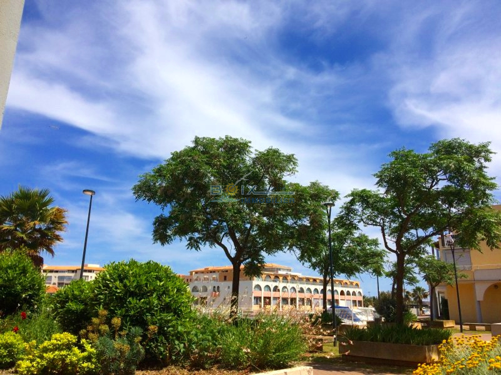 Vente à Sète dans la Marina au Port des Quilles, Studio avec salle de séjour et kictchenette équipée ouvrant sur une loggia avec baie coulissante. La cabine possède une fenêtre et peut être meublé avec un lit double.