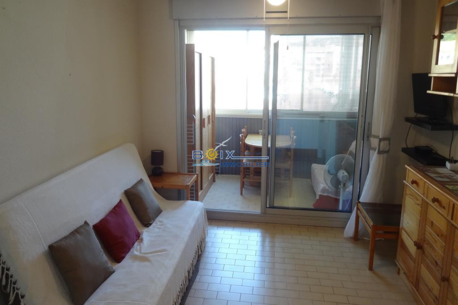 Vente à Sète studio au coeur de la Marine de Quillas . Studio - cabine SH 19M2 composé: kitchenette équipée séjour, cabine , salle d'eau toilette. loggia de 7M2. Parking privé. Vendu meublé.